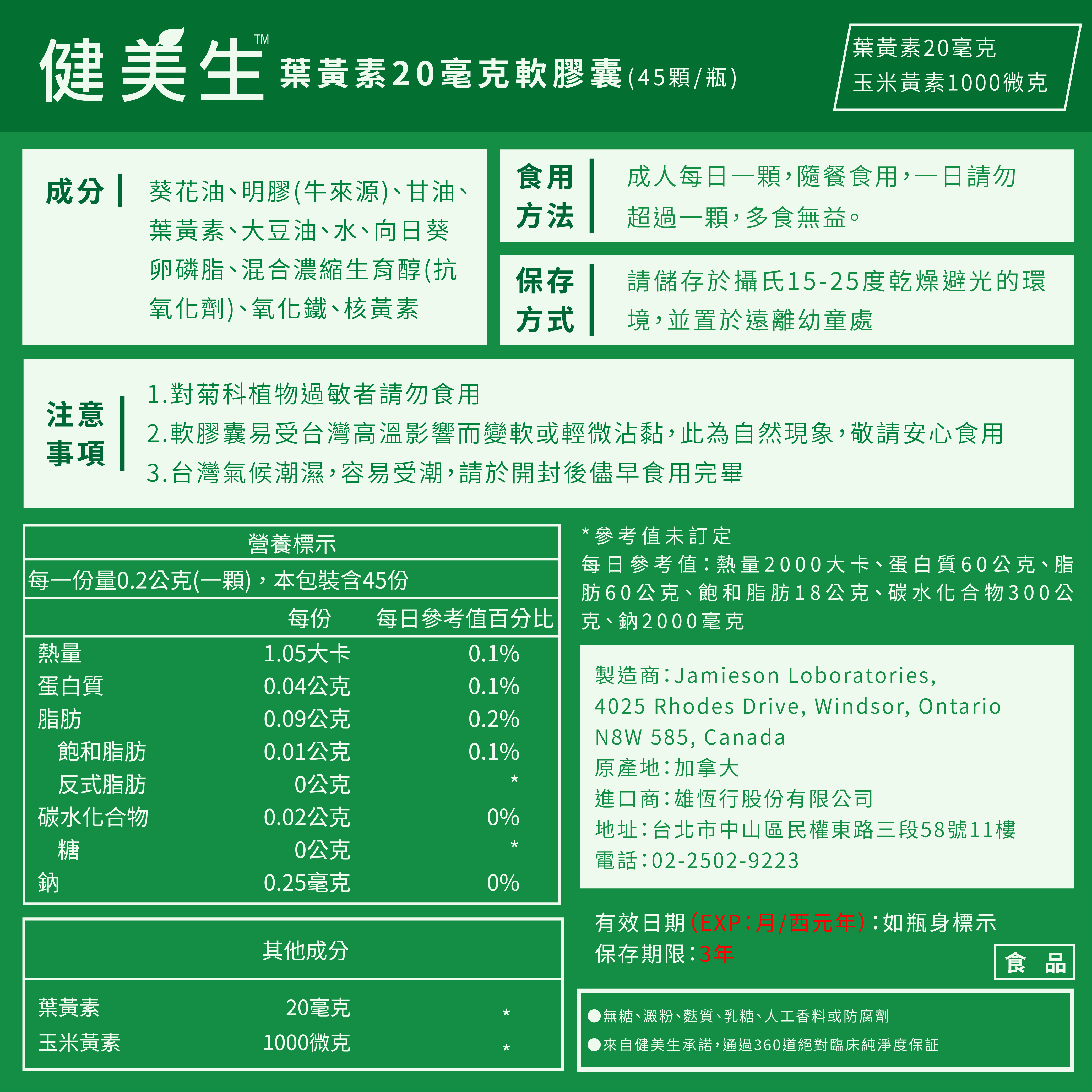 葉黃素20毫克+玉米黃素1000微克